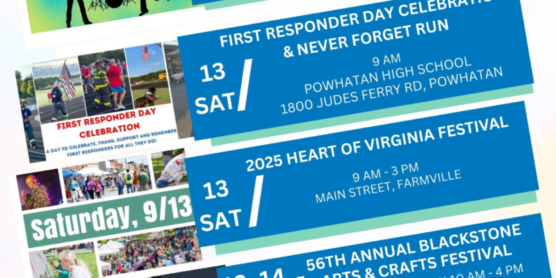 ๐ Fall is in the air here in Central Virginia, and our weekends are filling up with music, festivals, and family fun! ๐ถ๐จ๐ Hereโs whatโs happening this week:โจ Live Music across the areaโจ Blackstone Arts & Crafts Festival ๐จโจ 2025 Heart of Virginia Festival in Farmville ๐โจ Touch-A-Truck ๐โจ First Responder Day Celebration & the […]