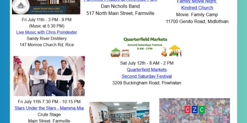 IT’S THE LAST WEEKEND IN JULY, Y’ALL! Hope you get out an enjoy some fun! FOR DIRECT LINKS & ALL OF THE DETAILS, ๐ฆ๐๐๐ก ๐จ๐ฃ up at https://bit.ly/localeventsnewsletterhere and an email will come directly to you.