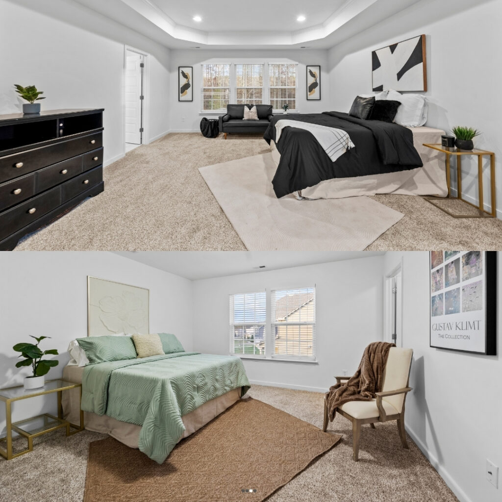 Primary Bedroom with Tray Ceiling, Crown Molding, Recessed Lights & Triple Windows