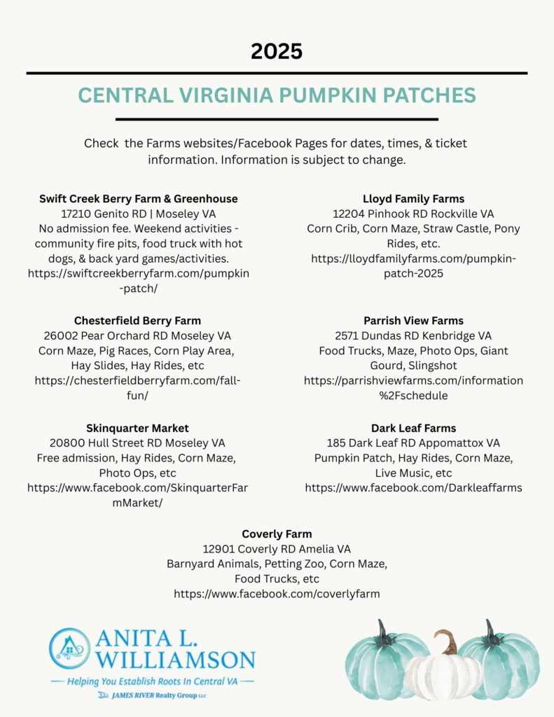 I pulled together a list of Pumpkin Patches across Central VA so you can plan your family adventures this season. Whether youโre in