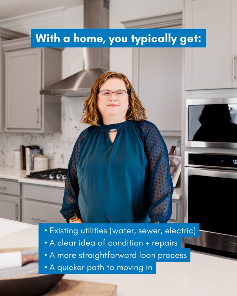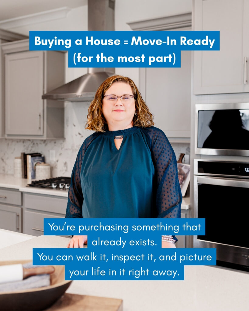 With a house, you can walk through it, feel it, picture your furniture in it, and know (for the most part) what you’re getting. The process is more straightforward, financing is more predictable, and your timeline to actually moving in is usually a whole lot faster.