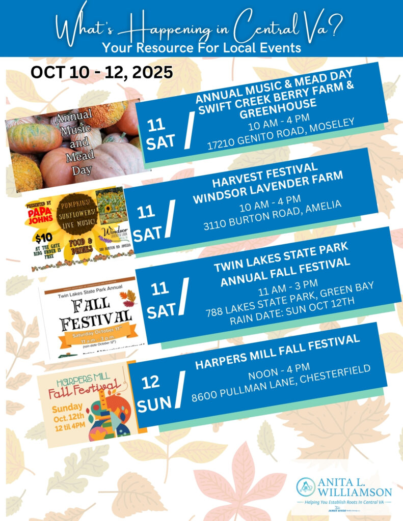 Central Virginia is bursting with fall fun โ€” from ๐ฌ๐ฉ๐จ๐จ๐ค๐ฒ ๐ฌ๐ญ๐จ๐ซ๐ฒ ๐ญ๐ซ๐š๐ข๐ฅ๐ฌ ๐š๐ง๐ ๐ญ๐ซ๐ฎ๐ง๐ค-๐จ๐ซ-๐ญ๐ซ๐ž๐š๐ญ๐ฌ ๐ข๐ง ๐๐จ๐ฐ๐ก๐š๐ญ๐š๐ง๐ŸŽƒ to music, markets, and mead in Moseley, and even ๐ฅ๐š๐ฏ๐ž๐ง๐๐ž๐ซ ๐Ÿ๐š๐ซ๐ฆ ๐Ÿ๐ž๐ฌ๐ญ๐ข๐ฏ๐š๐ฅ๐ฌ ๐š๐ง๐ ๐ฅ๐š๐ค๐ž๐ฌ๐ข๐๐ž ๐œ๐ž๐ฅ๐ž๐›๐ซ๐š๐ญ๐ข๐จ๐ง๐ฌ across Amelia and Green Bay. ๐Ÿ’œ๐ŸŒพ